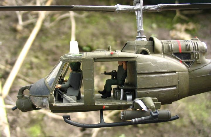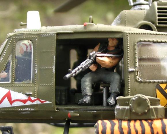 Hier war natürlich wieder Platz für Doorgunner und entsprechende Bewaffnung. Auf der Homepage der "Seawolves", einer Navy-Staffel, die den UH-1 flog, fand ich die ungewöhnliche asymmetrische Waffenkonfiguration mit einem 0.50cal-MG rechts und einem M60 links.