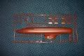Hallo, das Boot wurde nach Farbangaben von Revell geairbrusht. Anschließend mit mattem Klarlack versiegelt. Im künstlichen Licht erscheint der Farbton rot-braun. Sorry, das Foto wurde mit dem Handy gemacht, leider etwas unscharf.