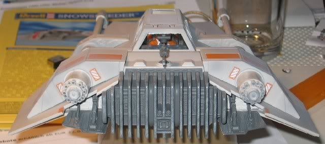 Trotzdem muß ich zugeben - je häufiger ich mit dem Snowspeeder hier über den Computertisch fliege, umsomehr  Spaß macht er mir. Und ich habe - anders als bei einem "normalen" Modell - keine Probleme damit, die Kiste draußen einstauben zu lassen o.ä.
