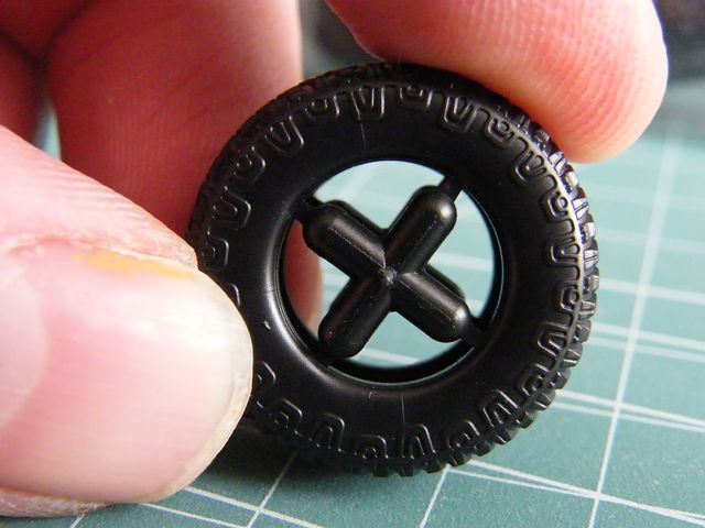 Auch bei den Reifen schlägt Academy neue Wege ein, keine Gummi reifen, die Reifen bestehen aus 2 Plastikhälften die ein sehr gutes Profil zeigen und schon jetzt sehr gut Passen.