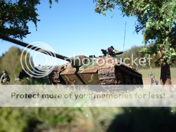 Danke für das Lob. Das Tarnmuster ist mit dem Pinsel gemacht. Habe zwar eine recht gute Revell-Airbrush aber bin meist zu faul, diese auch zu benutzen, bzw. ist mir der damit verbundene Aufwand zu hoch.  Ich grundiere meine Fahrzeuge schwarz, dann bekommen sie einen (in dem fall grünen) Trockenbürstanstrich mit flachem Pinsel, dann male ich die Tarnflecken auf, akzentuiere sie, gebe dem Fahrzeug noch ein washing und zusätzliches Drybrushing, bemale die Details, etwas Alterung...fertig.