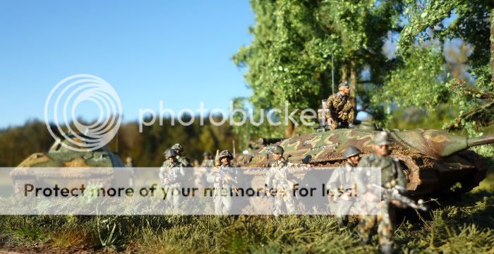 Diese "what if" - Szenarien haben mich schon immer gereizt. Meist geht das Ganze dann ja Richtung "schwere Kampfläufer, UFOs und Nazi-Zombies". Dies ist mein Versuch, ein realistischeres Bild einer deutschen Einheit darzustellen, aufgenommen ein paar Wochen vor dem Abwurf der ersten Atombombe über Deutschland.....so wär´s vermutlich gekommen.