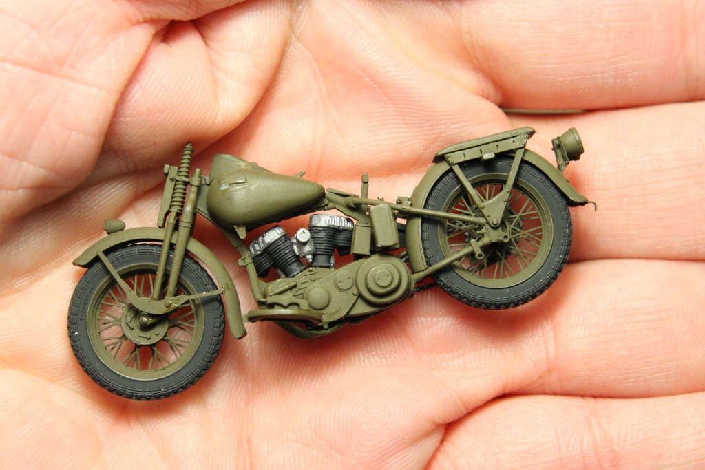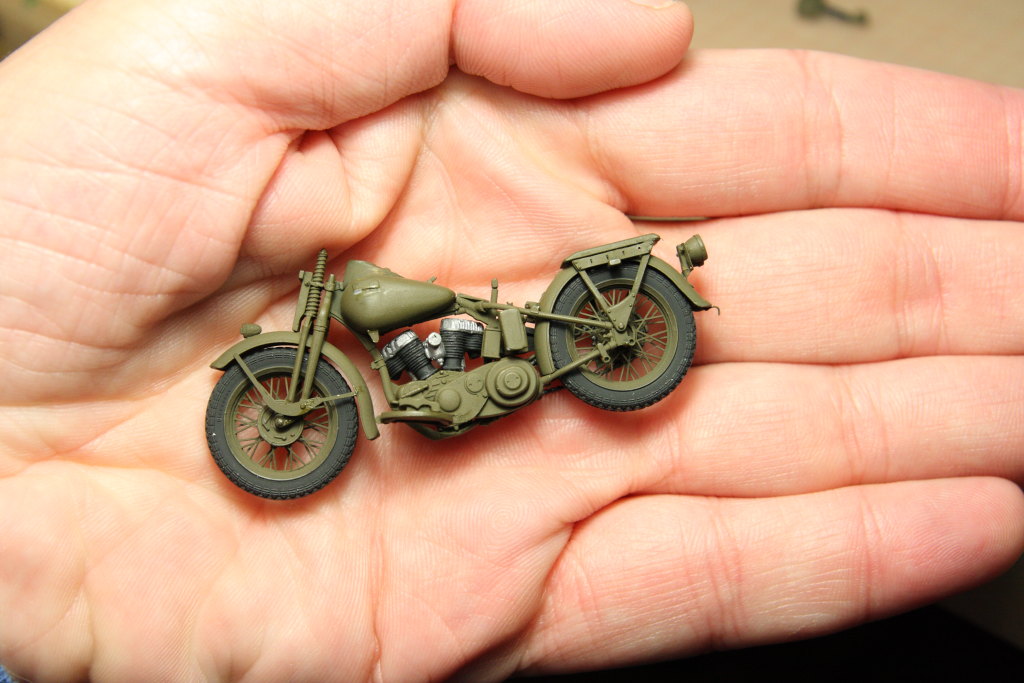 Nach dem Jeep kam noch die Harley WLA von Miniart in 1/35 dazu. Supersuperschöner Bausatz, sehr empfehlenswert. Aber Obacht, das Ding ist echt winzisch.