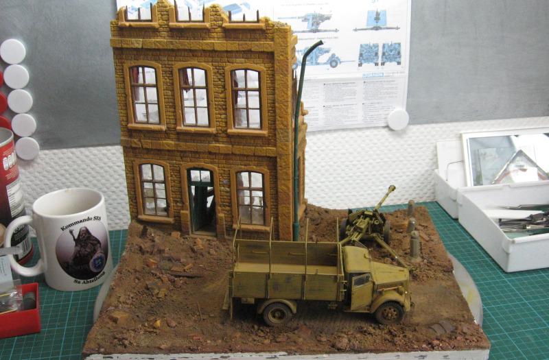 Der Opel Blitz von Italeri ist auch fertig geworden (nachdem er gute 19 Jahre (!) halb gebaut in irgend einer Ecke schlummerte) und soll nun ein weiteres Projekt mit Leben füllen - die Ruine.