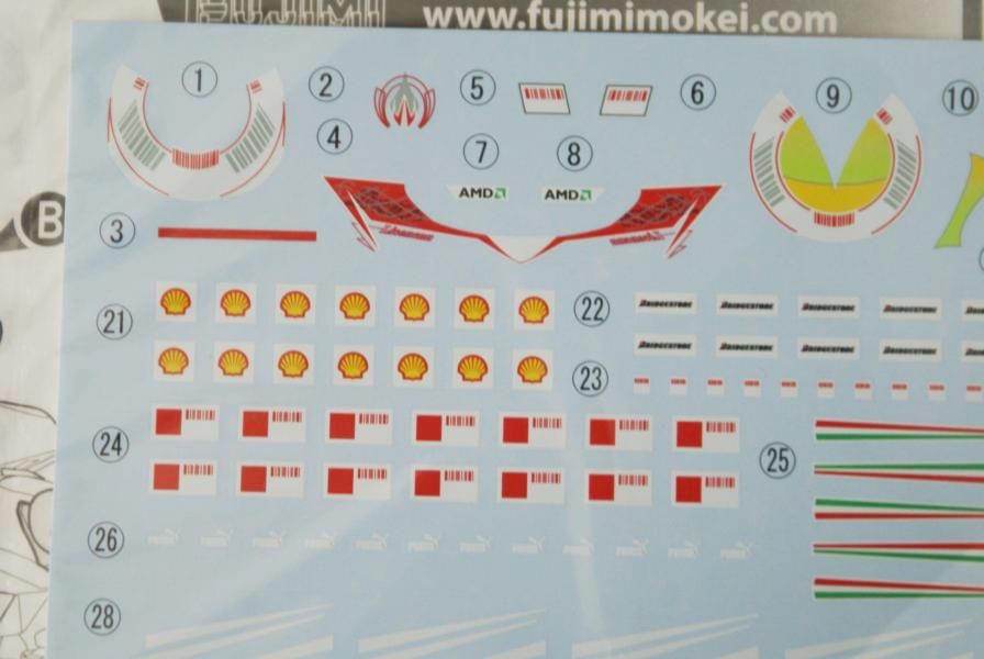 Leider hat Fujimi aber anscheinend keine Ferrari Lizenz für das Set. Die Ferrari Logos fehlen nämlich.