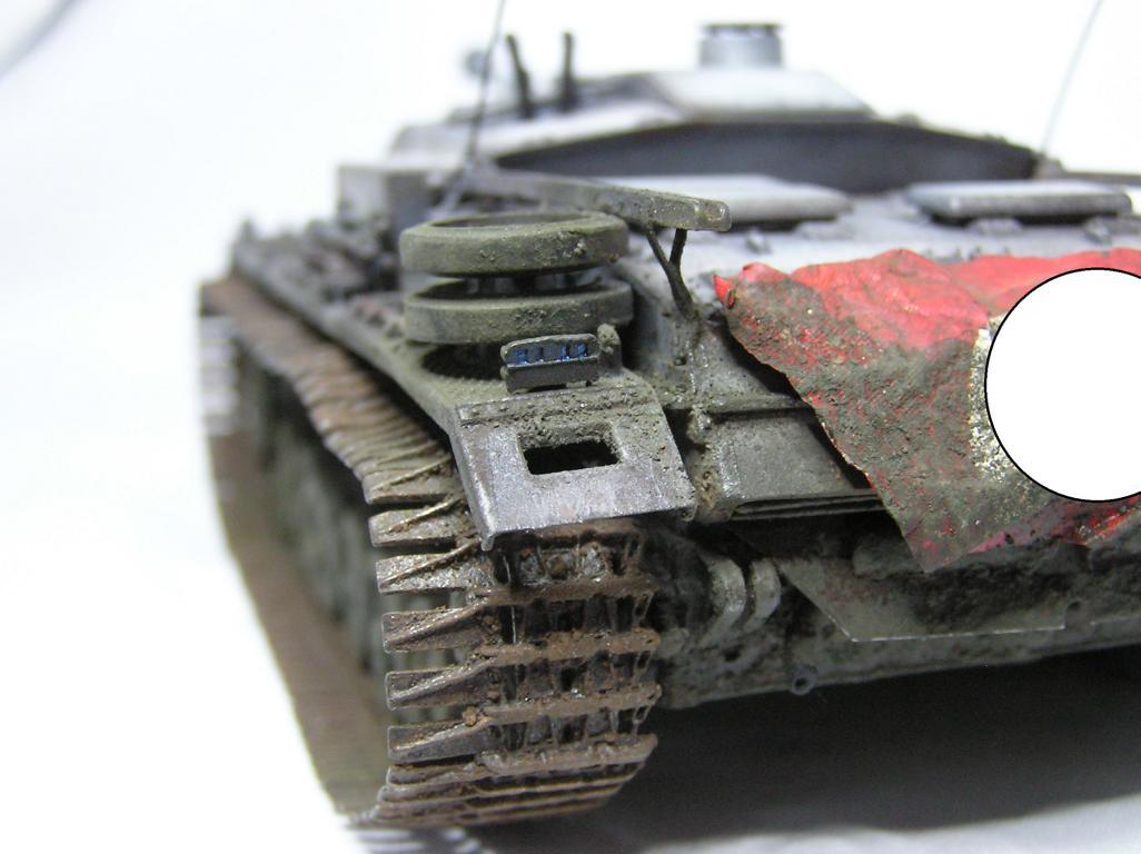 bschließend wurde noch ein Washing mit verschiedenen Ölfarben über das Fahrzeug gelegt. Schlamm und Matsch wurden mit unterschiedlichen Ölfarben und matten Klarlack als Bindemittel aufgetragen.