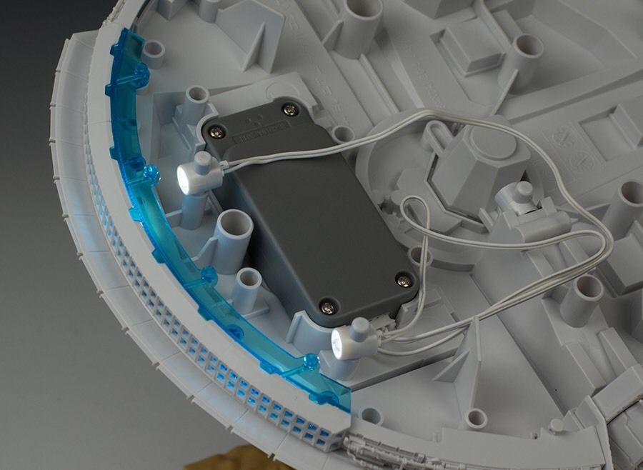 Für die Cockpitkanzel gibt es eine klare Acrylversion und eine "Nur-Rahmen-Version" (also ohne Scheiben). Letztere bietet einen spiegelfreien Blick ins Cockpit und wurde auch bei den Studiomodellen der Originaltrilogie verwendet. Das Cockpit selbst ist sehr detailliert und bietet vier Figuren Platz zum Sitzen.