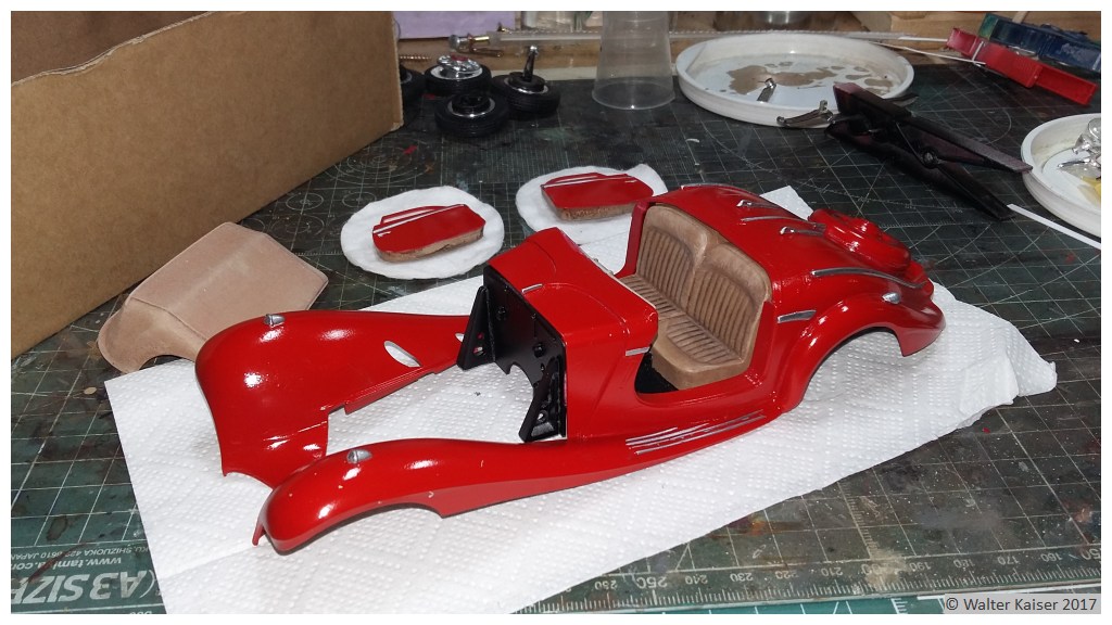 Aktuell versuch ich mich wieder aus Restaurator ... diesmal ist ein vor 40 Jahren gebauter Mercedes 500K von Heller in 1:24 an der Reihe, der ein jämmerliches Dasein führte ...