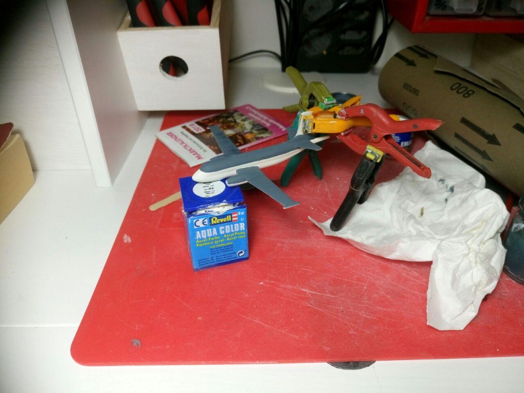 Öh...eine weitere Frage: Woher hast Du dieses Dings, auf dem das Flugzeug gelagert ist?