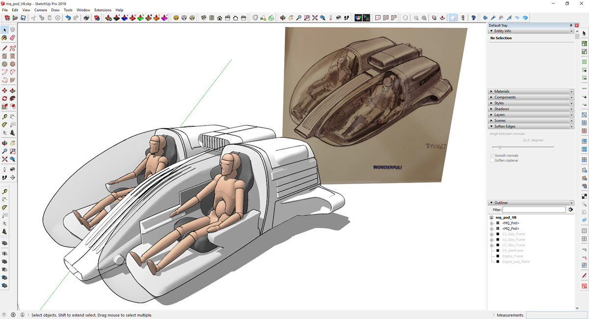 Nach etwa 4 Stunden ging ich direkt zu SketchUp zurück und verbrachte die Woche damit, einen kompletten W08 im Maßstab 1:12 zu entwickeln.