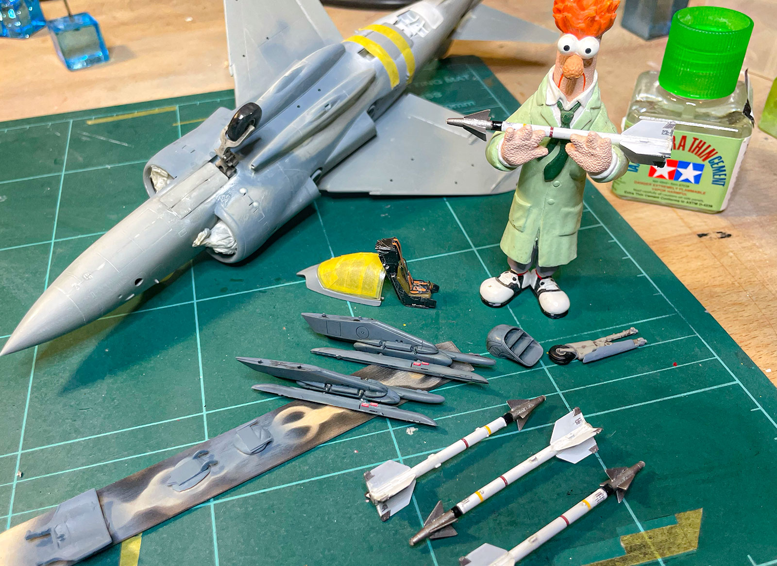 Im gefühlten Schleichtempo trotz viel Zeit am Basteltisch geht es mit meinem Sea Harrier von Kinetic, oder Passtnic, oder Fitnix oder so weiter... puh, echt eine Nervenschlacht... immerhin, die Sidewinders sind fertig und eventuell komme ich mit einer Tube Mr. White Putty aus...  :7: