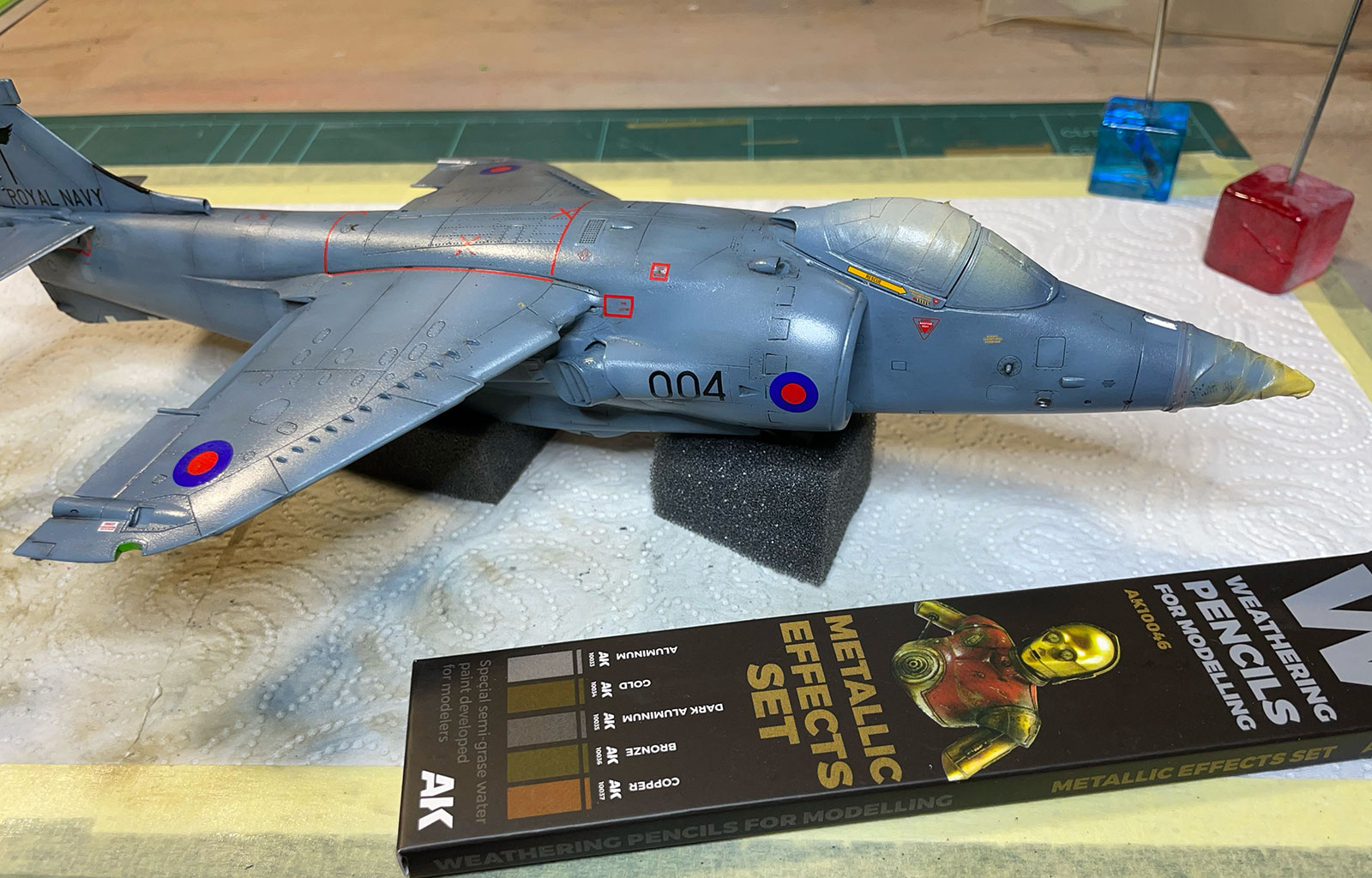 Moin in die Runde. Bestimmt gibt es schon einen Thread, aber auf die Schnelle fand ich nicht den tiefverzweigten Weg dahin. Meine Frage: ich möchte mich mal mit Aquarell-Stiften (Wasserfarbe) an meinem Modell versuchen. Decals sind drauf, Panel-Wash fertig, nun mit Humbrol-Clear versiegelt.