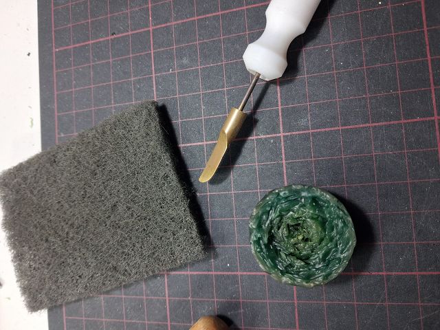 Den Spatel hatte ich mir aus Messing selbst gedengelt.